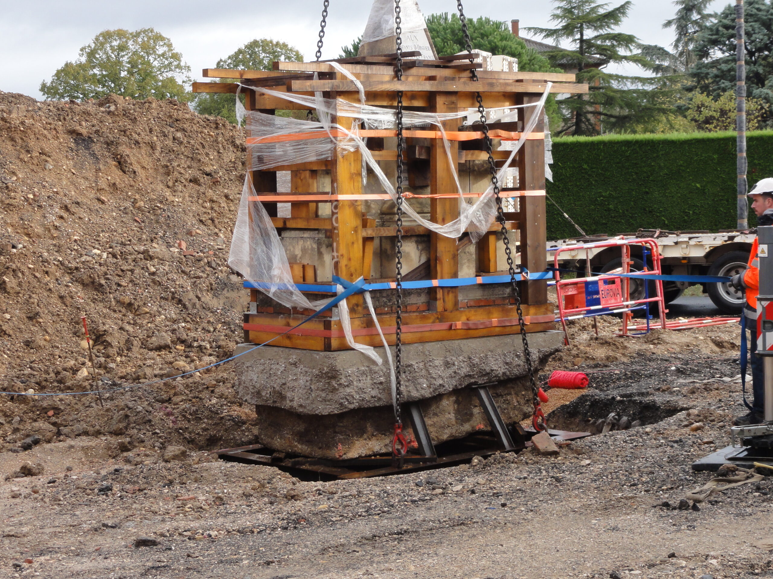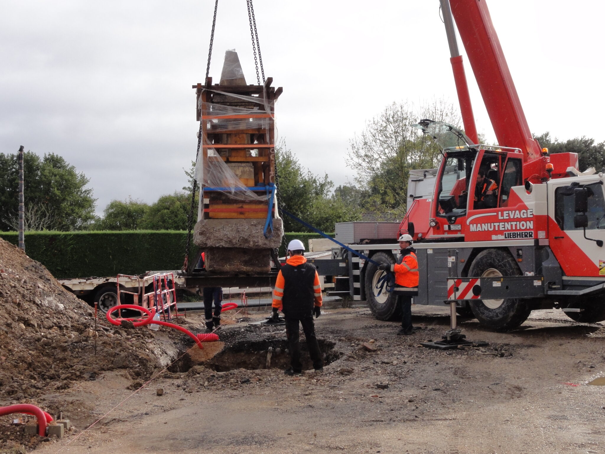 avant de trouver son emplacement définitif, le monument a dû être déplacé et positionné provisoirement sur l’espace Jean Capellini, devant la salle des fêtes. Ce déplacement a été fait le 16 mai 2023, après une préparation minutieuse par les équipes de Véolia.