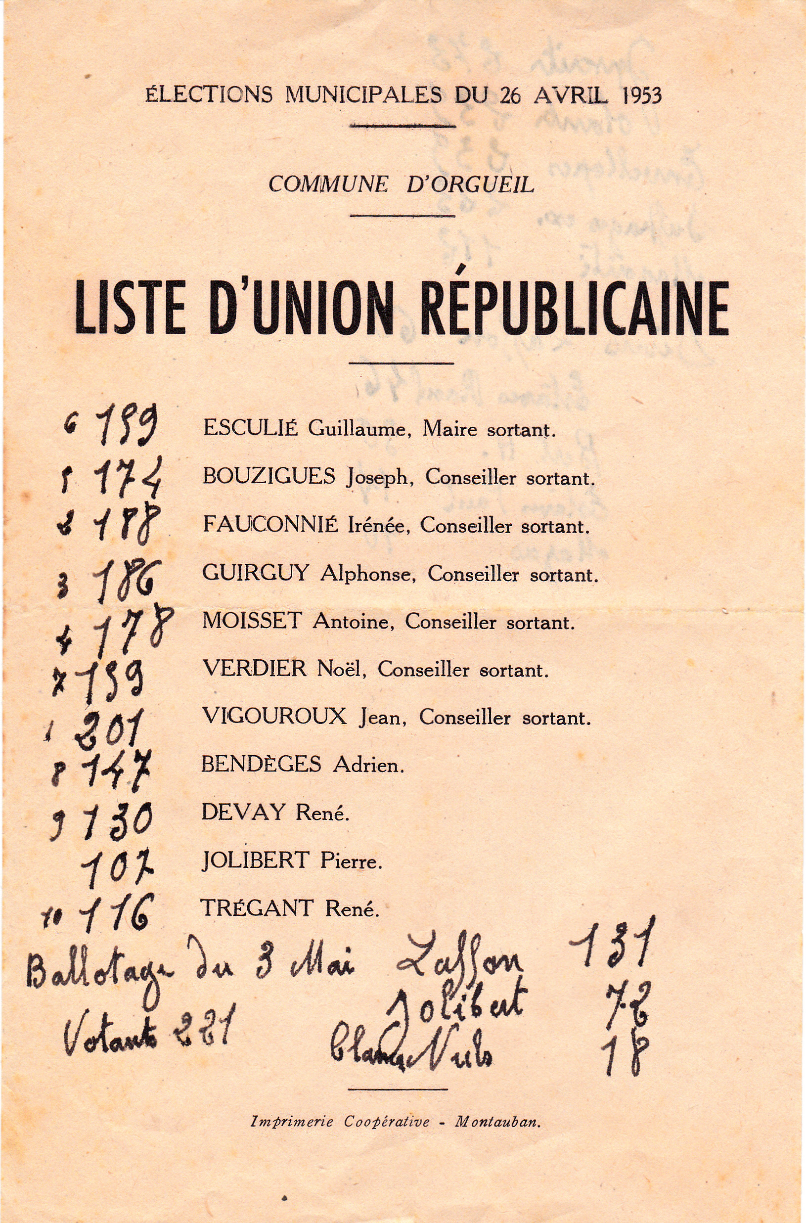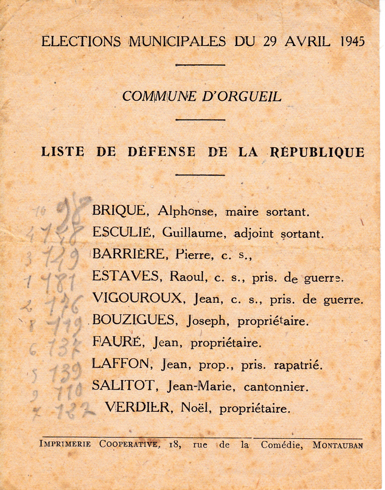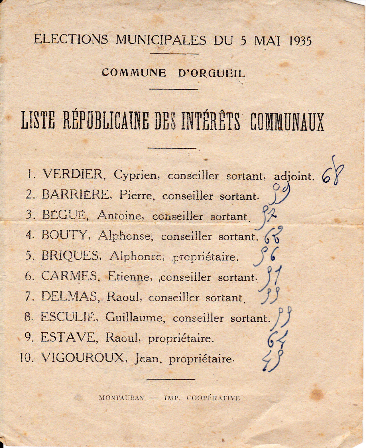 Les élections municipales de 1935 à nos jours – Orgueil (82)