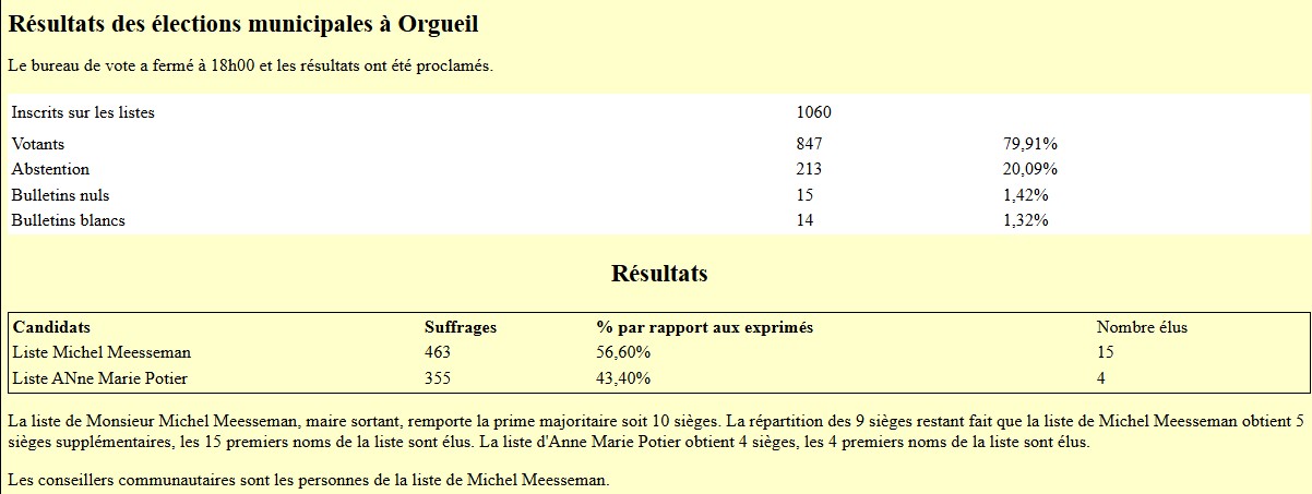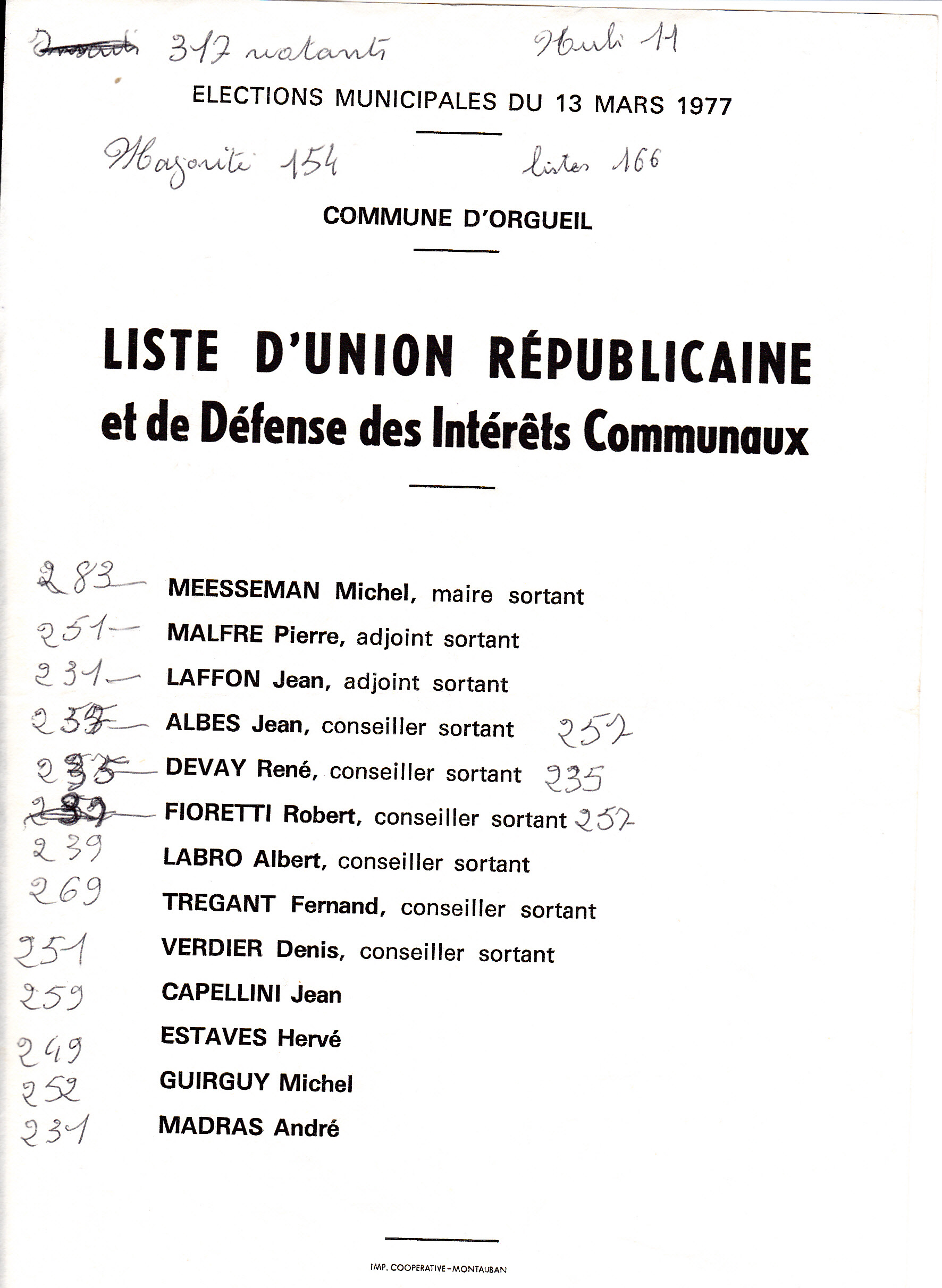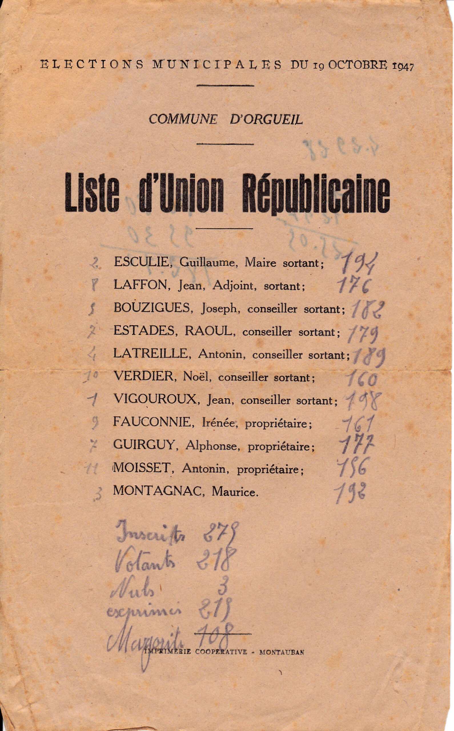 Les élections municipales de 1935 à nos jours – Orgueil (82)